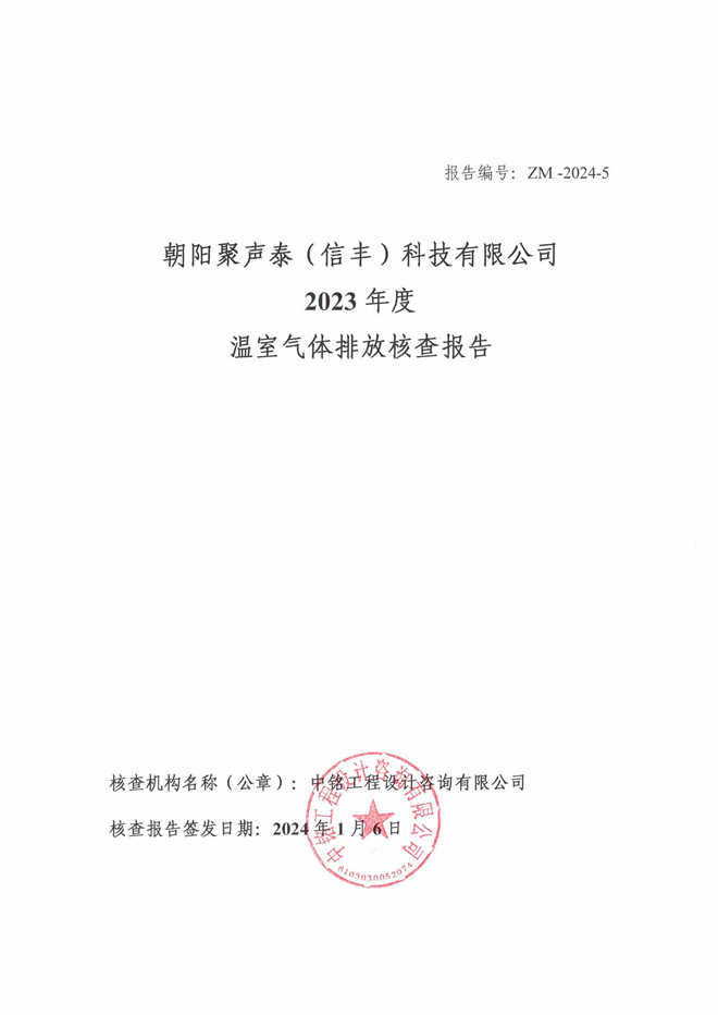 • 2023年度溫室氣體排放核查報告公示
