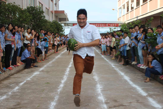 第一場(chǎng)接力賽;接力賽4人一組舉行(2男2女),共16組,每組參賽人員站在各自跑道,每個(gè)跑道存放一個(gè)西瓜(大小均勻西瓜),聽到裁判員發(fā)出“各就各位”口令后,參賽人員蹲下身抱起西瓜,當(dāng)裁判員鳴哨后,參賽人員即可起動(dòng),抱起西瓜,沿著跑道向前方傳遞西瓜,這樣依此前進(jìn)來(lái)回,直至最后一位參賽選手越過(guò)終點(diǎn)線為勝組。
