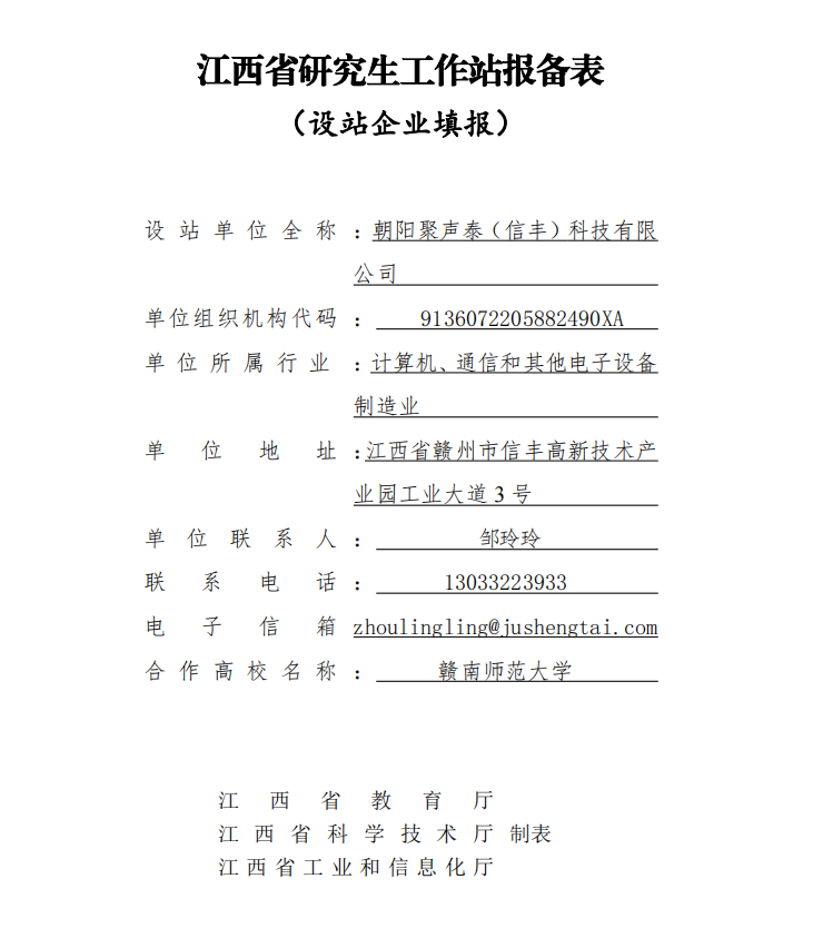 • 江西省研究生工作站報備表公示